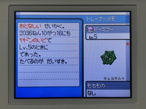 HGSSでドーミラーをガンテツするにはシンオウサウンド(木曜限定)で出さなくてはならず、性別不明でメロボも効かないので、ちゃんと野生乱数しましょうねというお話です。