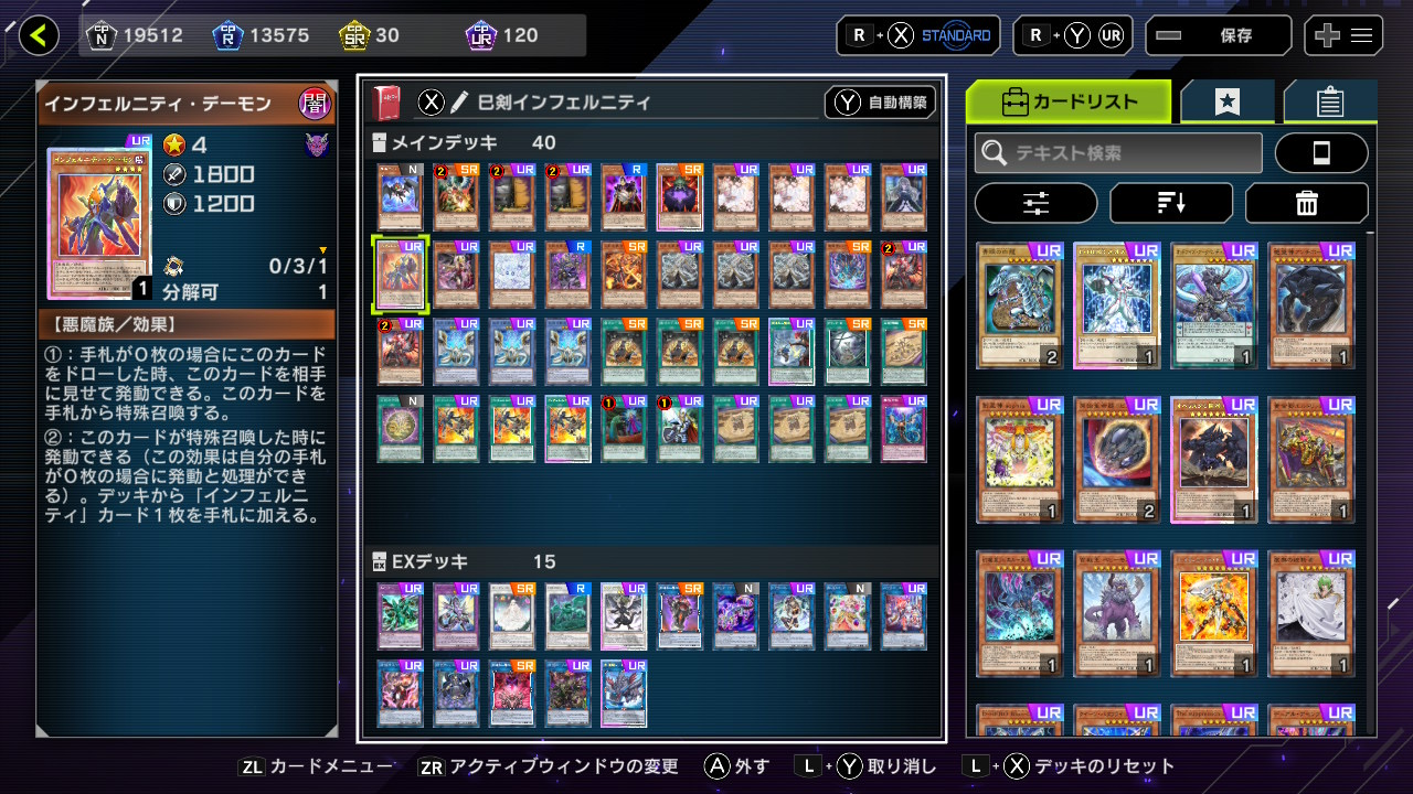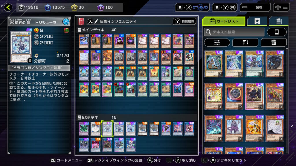 巳剣要素をなるべく削ぎ落としたらこうなりました。ムラクモやオオハラエを入れて巳剣要素を強くしたり、インフェルニティを抜いてライゼオルやヤミーを入れたりとカスタマイズ性が高くて楽しいですね。